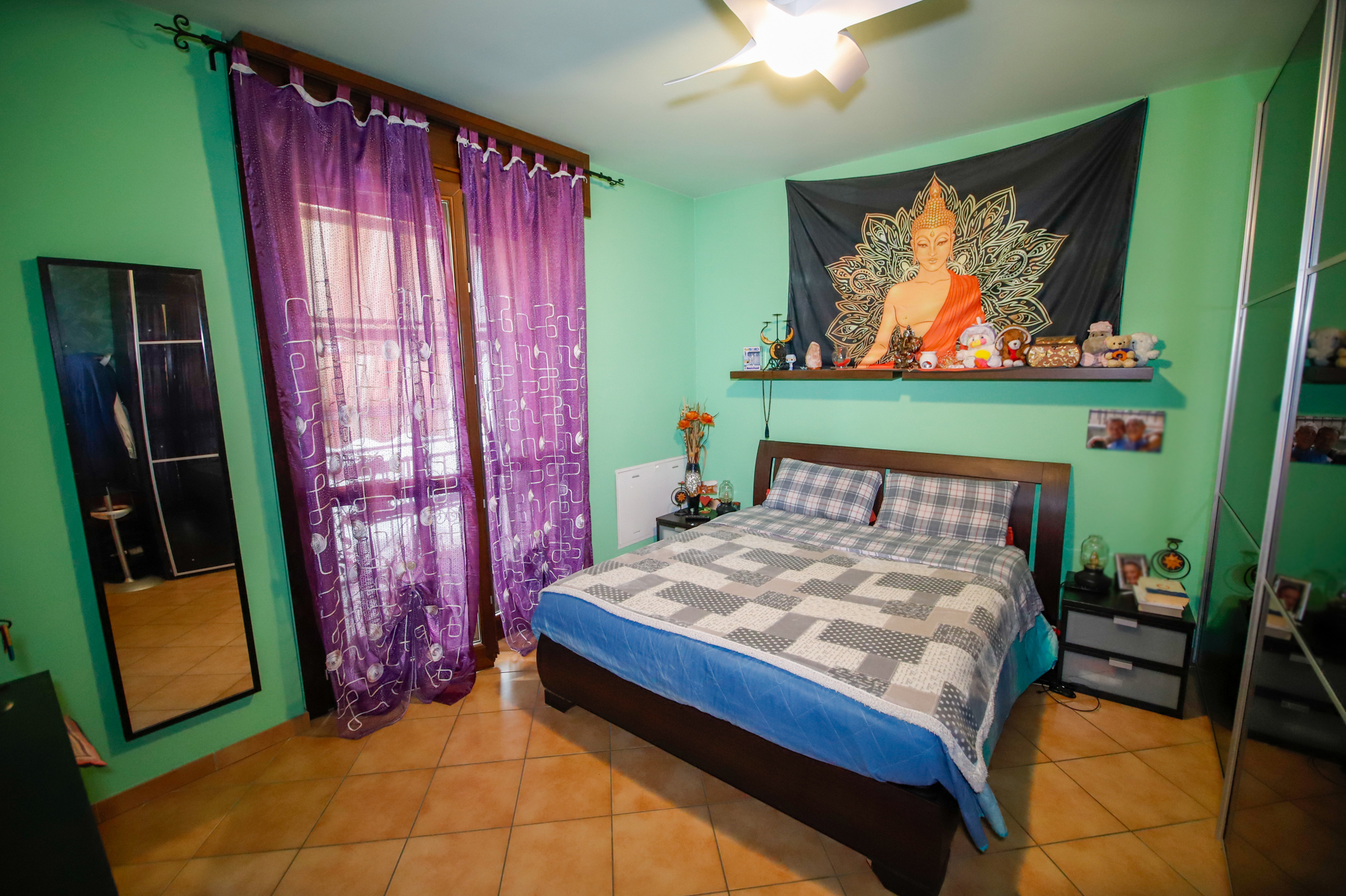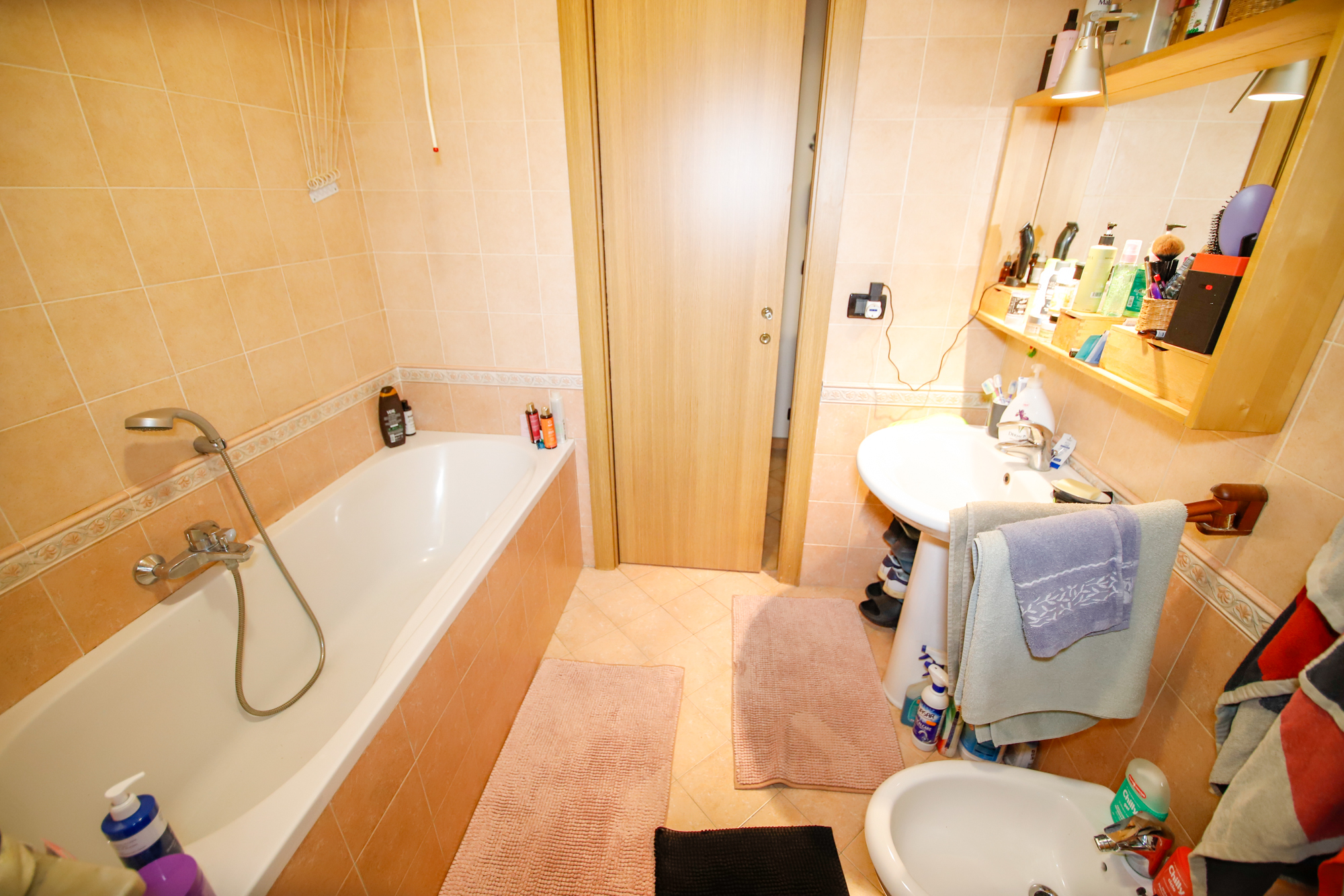 La zona notte è composta da una spaziosa camera da letto, anch’essa con accesso diretto sul balcone e da un bagno pratico con vasca e finestra.