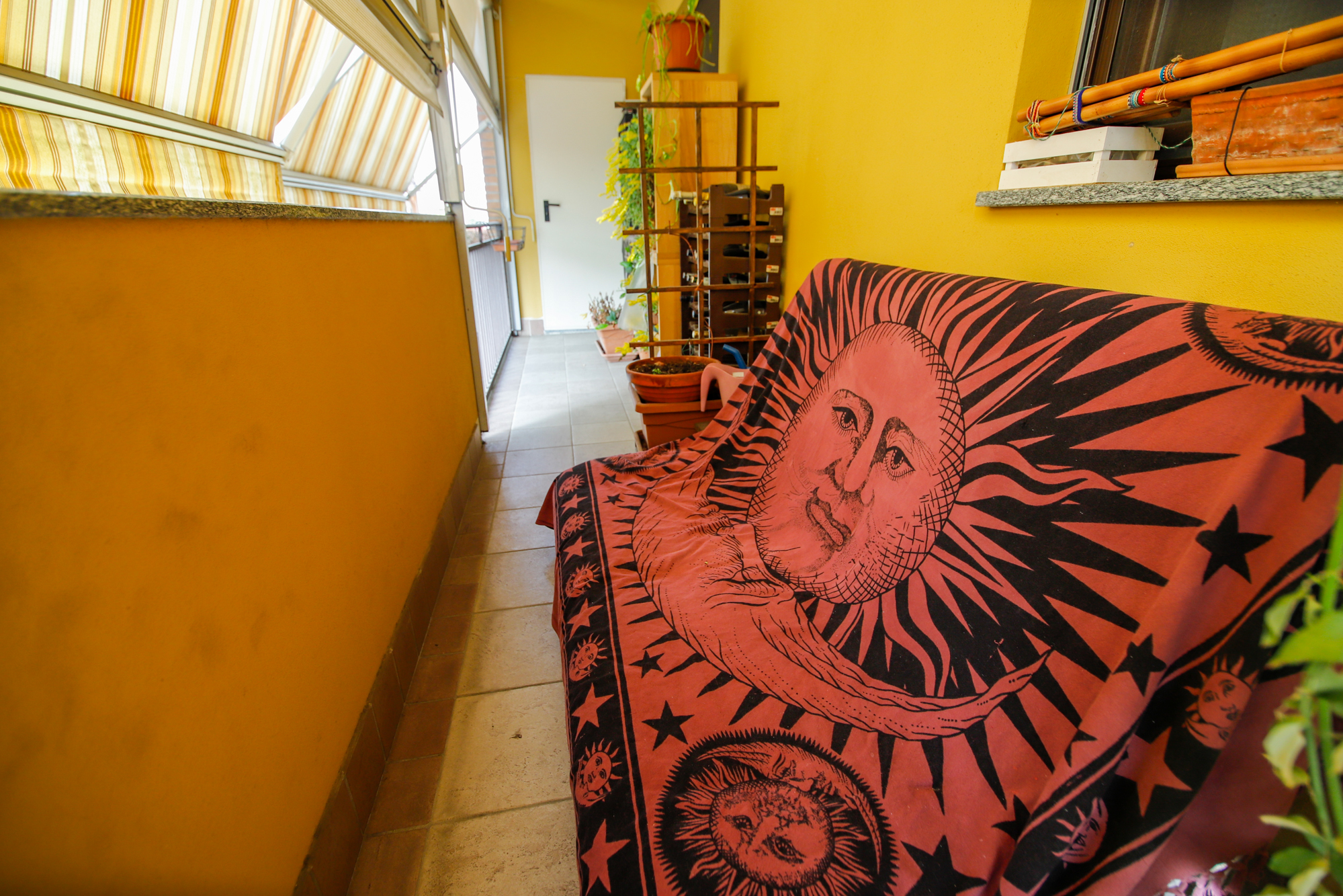 L’ingresso si apre su un pratico disimpegno che conduce alla zona giorno, un ambiente accogliente con cucina a vista e accesso diretto sul balcone.
