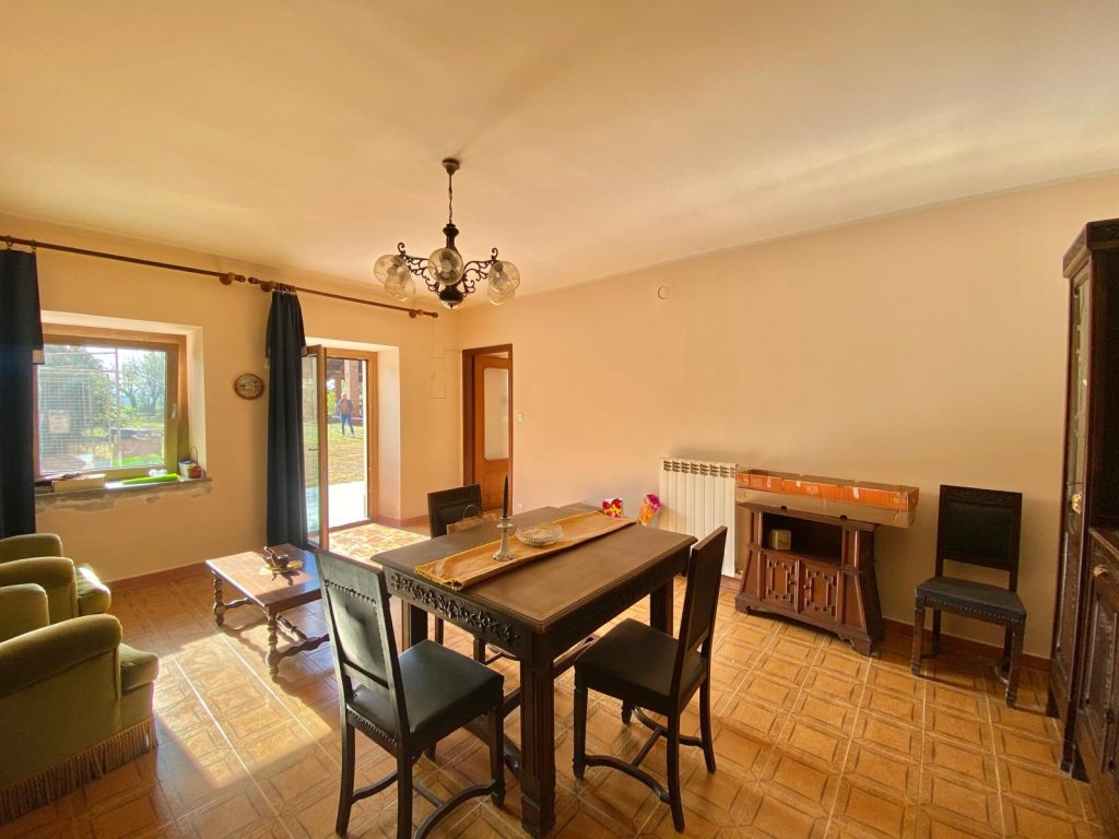 Al piano terra si trova un ambiente che unisce la cucina abitabile con caratteristiche volte a botte, una cantina annessa, un’ulteriore camera e un bagno. Tramite una comoda scala esterna si accede al primo piano composto da tre camere da letto, un secondo bagno e una travata da ristrutturare, che offre ulteriori possibilità di ampliamento.
