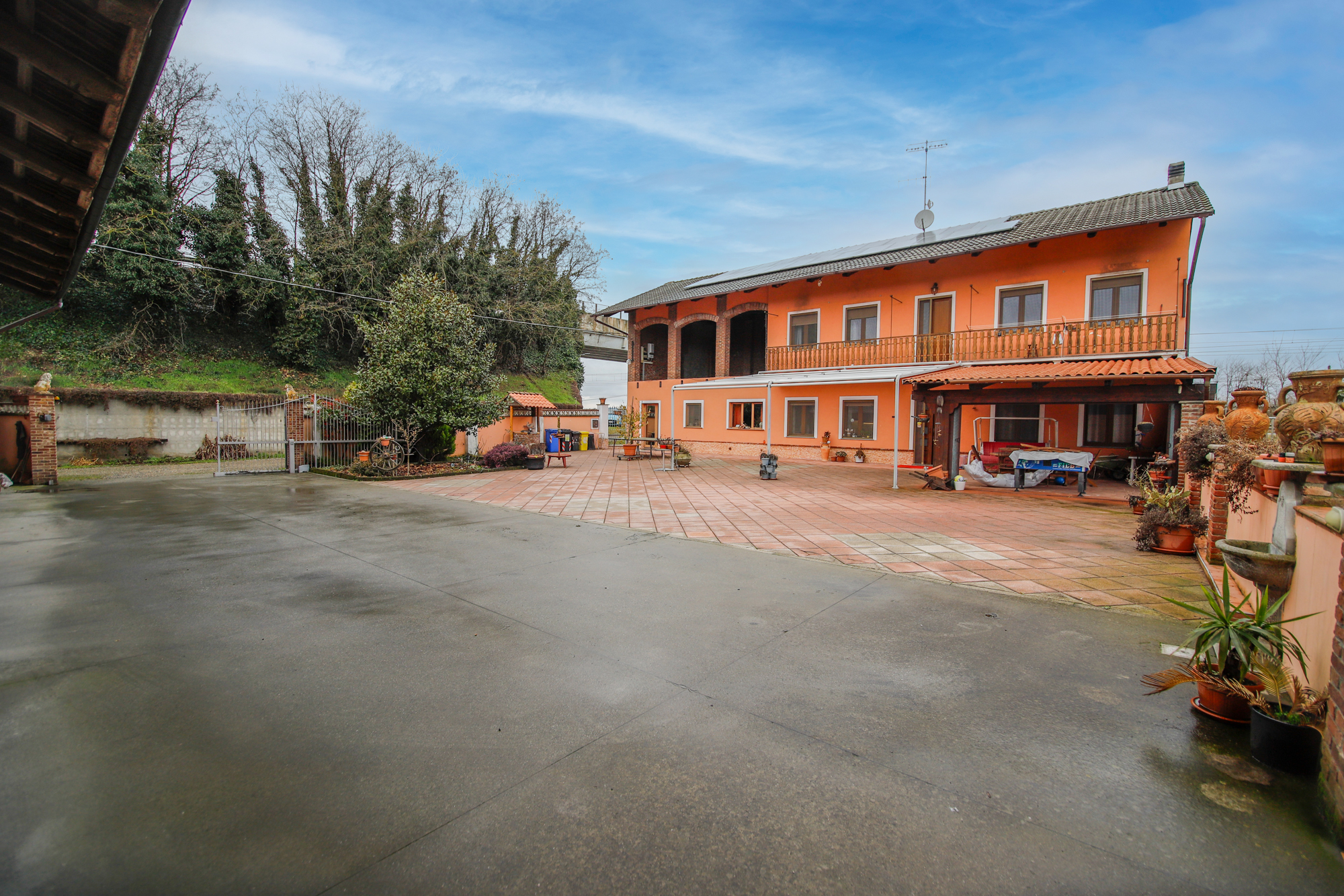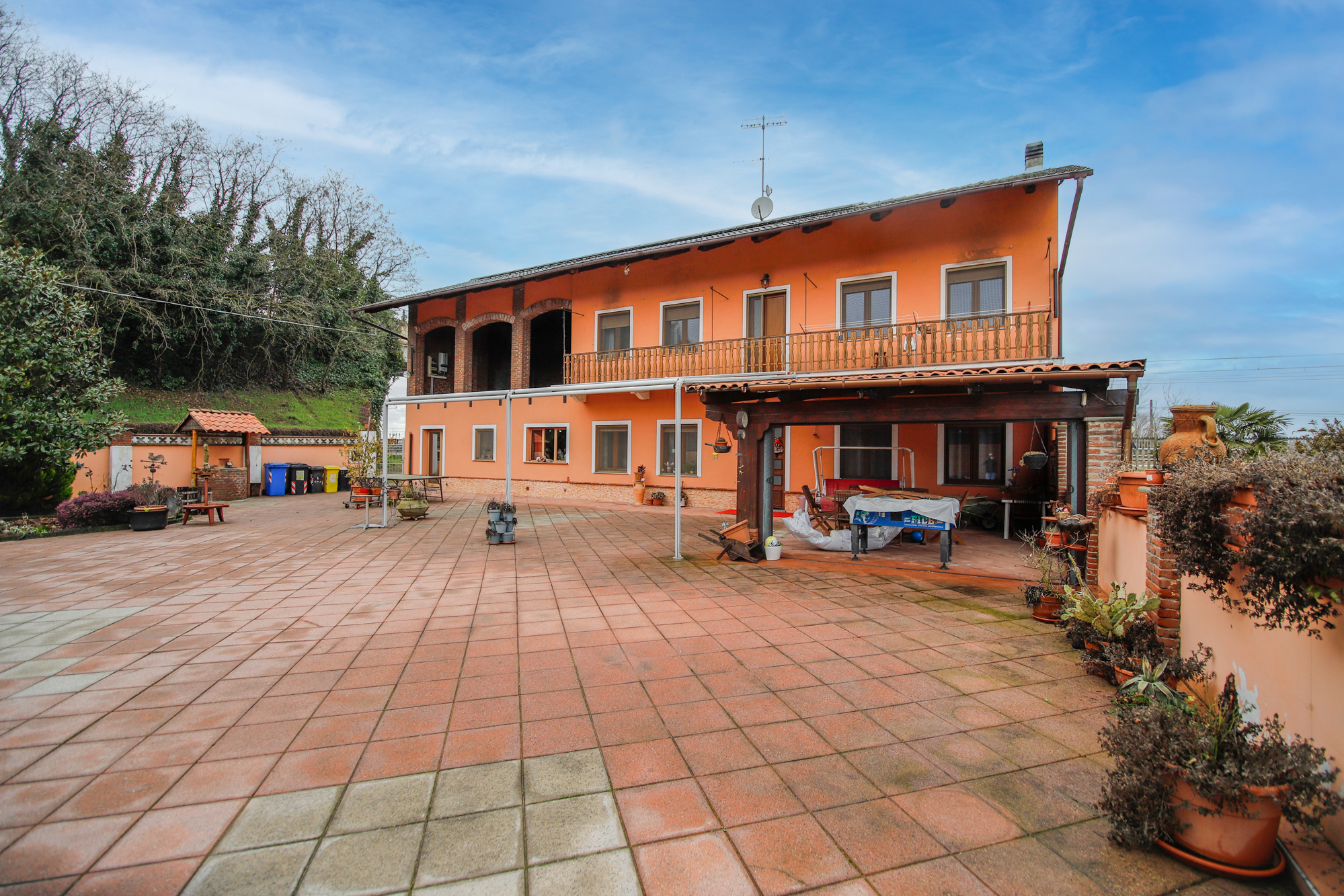 All’esterno troviamo una tettoia coperta, ideale per cene estive e momenti di convivialità, oltre a spazi ombreggiati perfetti per il relax. Presente anche un magazzino versatile, utilizzabile come laboratorio area hobby o deposito.